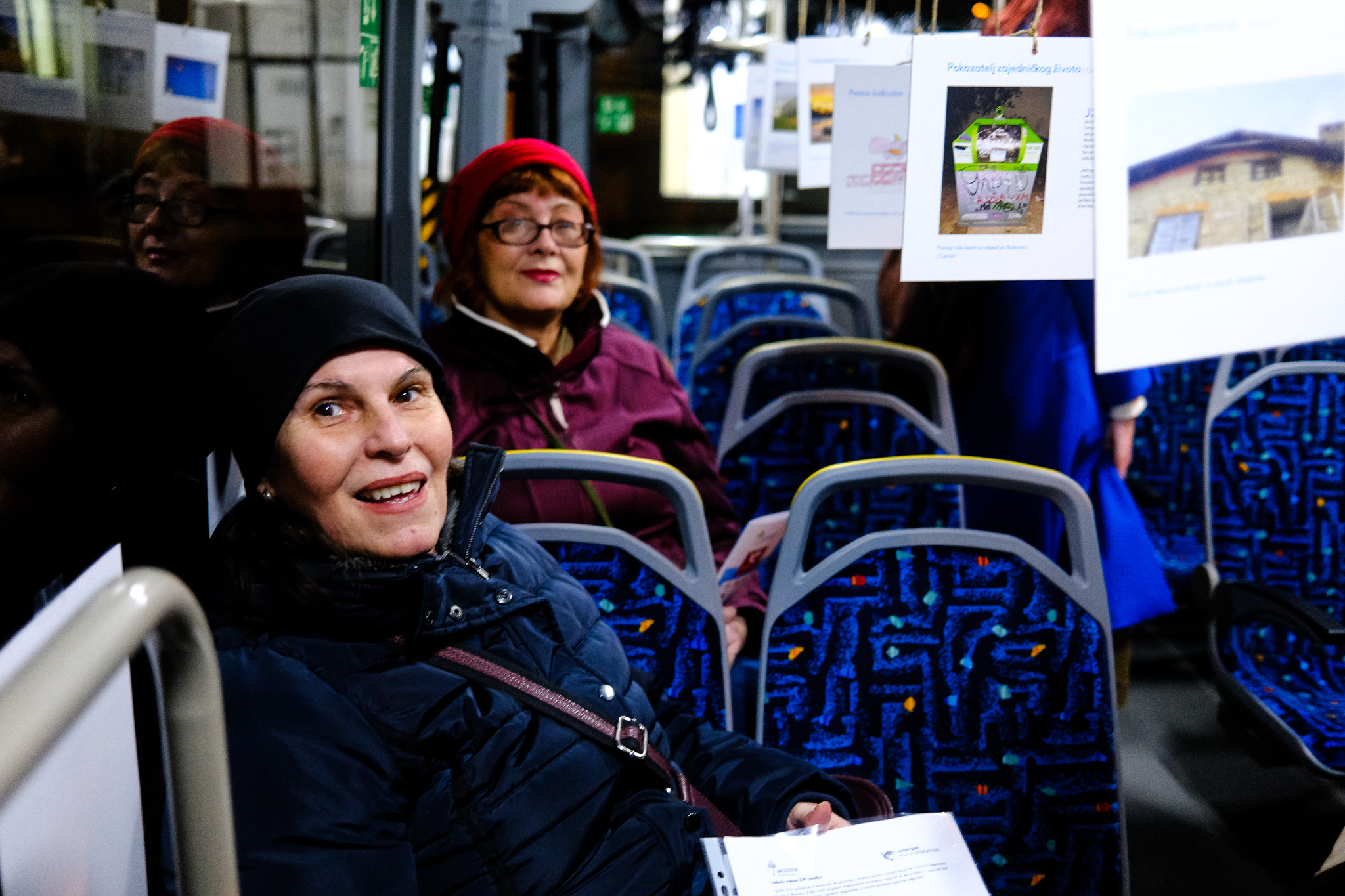 EPI’s Photo story exhibition was displayed in a city bus from 15-18 February 2024, which was parked in a central urban location and then travelled to peripheral, rural communities. Visitors to the exhibit experienced a soundtrack of everyday Mostar noises – river water flowing, traffic and people talking in cafés – and could browse the 21 select photo stories from all seven neighbourhoods.